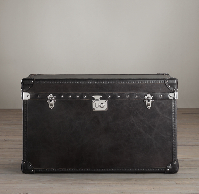I always look for flat top steamer trunks, because they are much i love the look of these industrial trunk coffee tables!